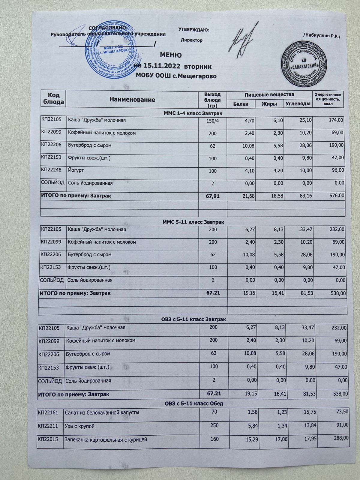 (Меню 10.11.2022)